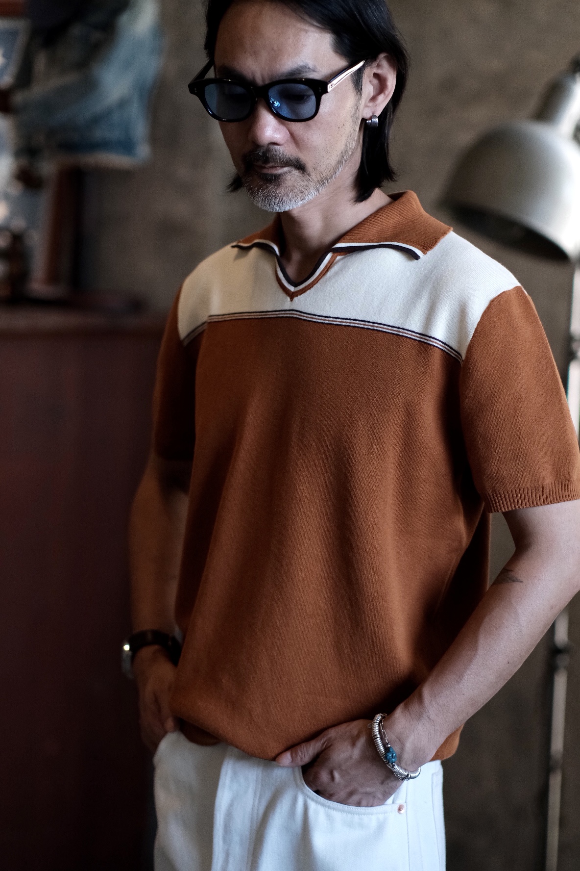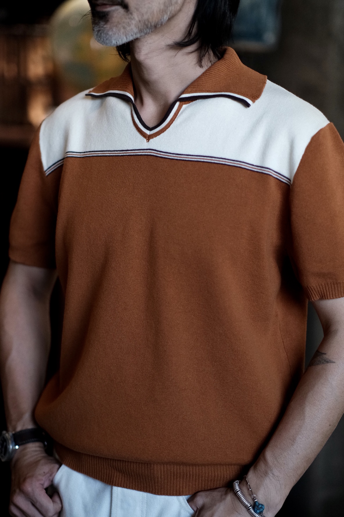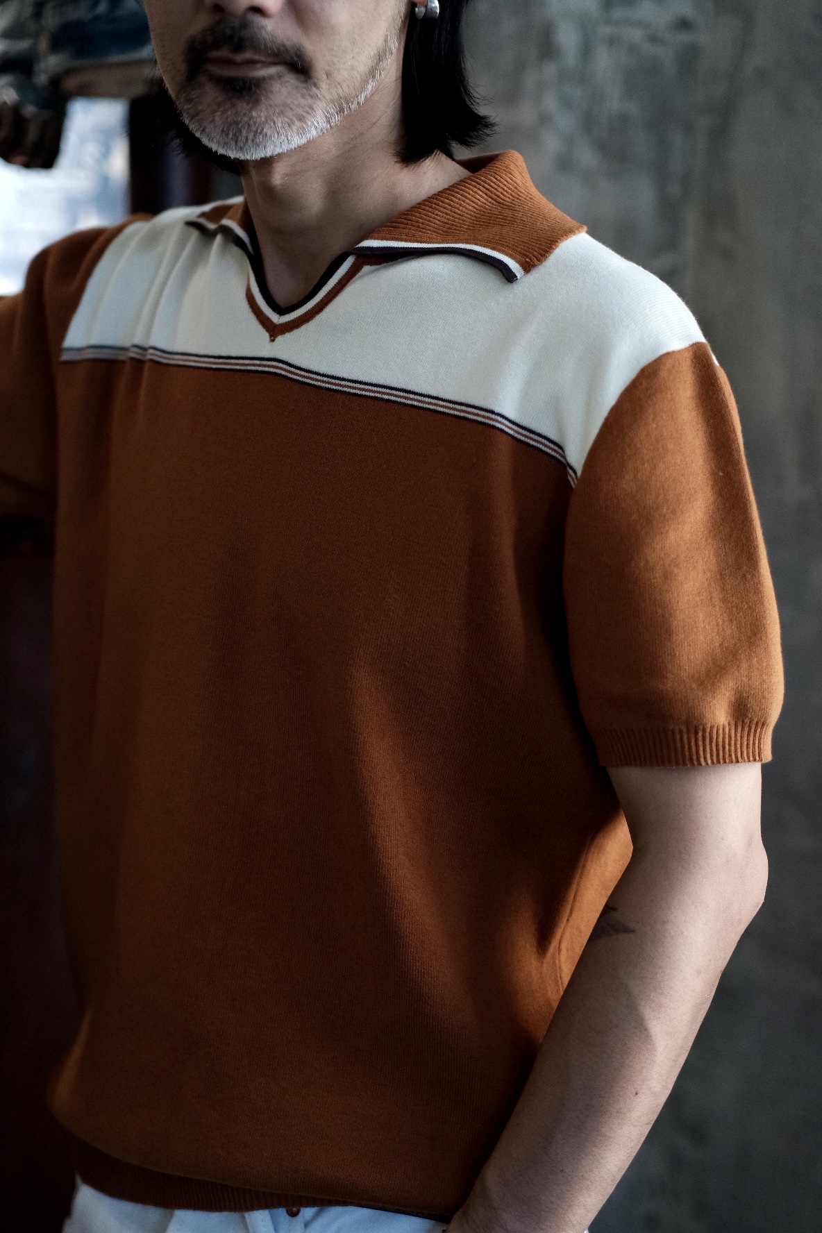 [labour union] V-Neck Lapel Jacquard Polo Knitwear LU707
