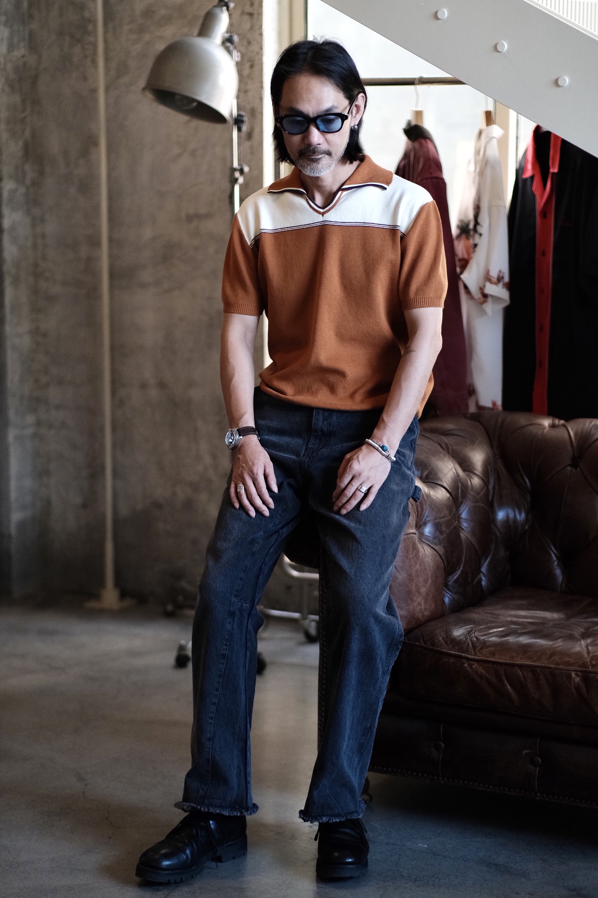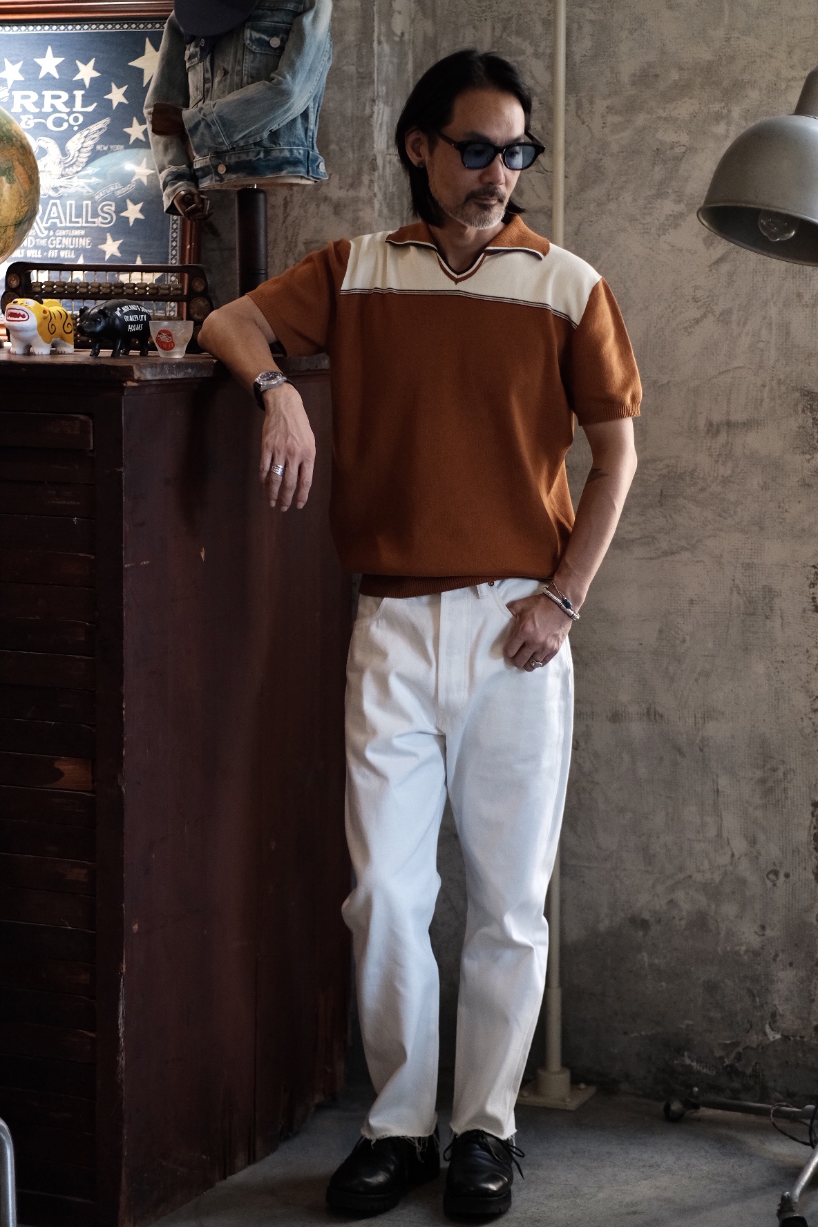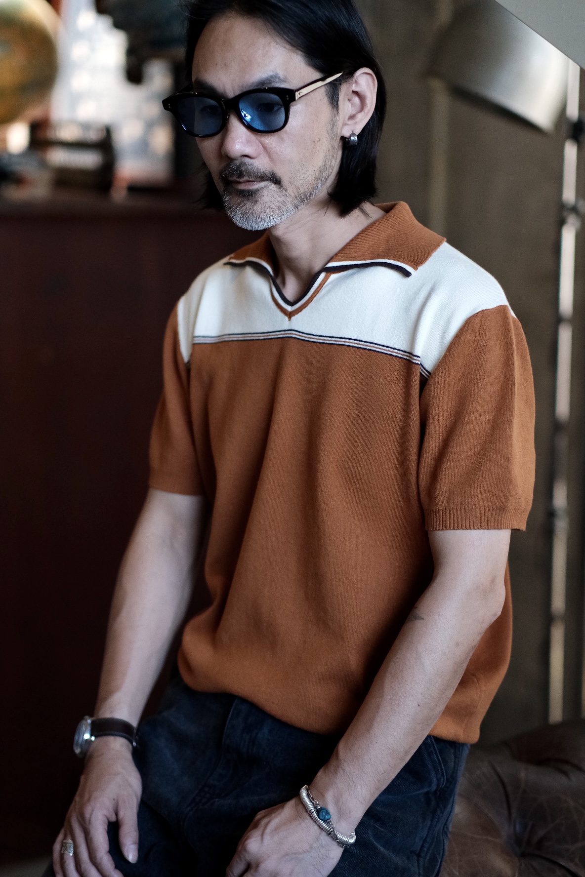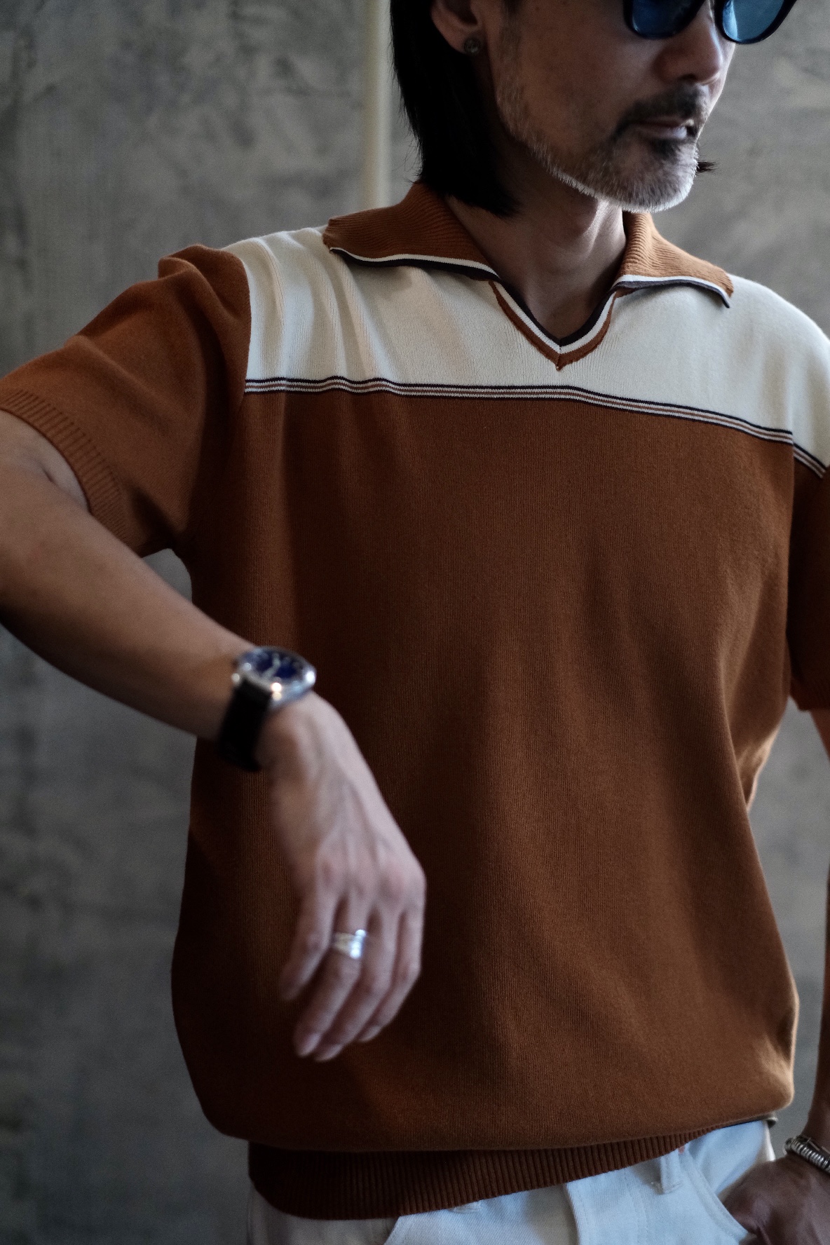 [labour union] V-Neck Lapel Jacquard Polo Knitwear LU707