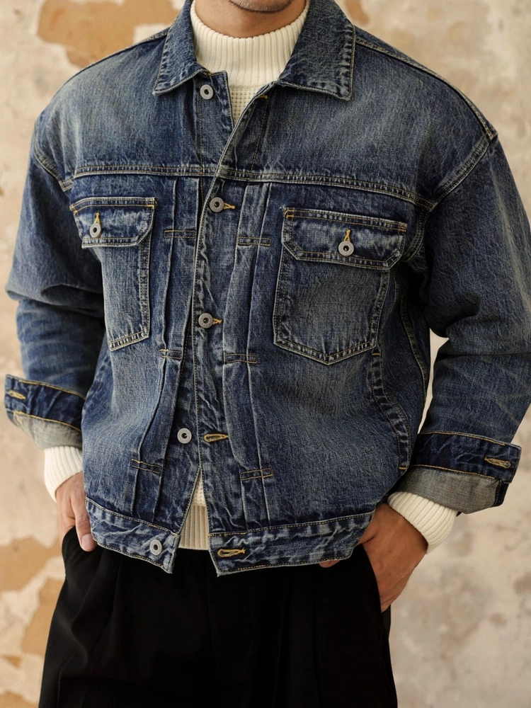 - 셀비지 데님은 고품질의 면 소재로 만들어집니다. 그리고 전통적인 직조 방법을 사용하여 생산됩니다.