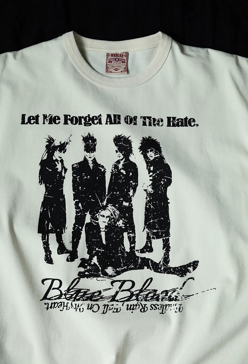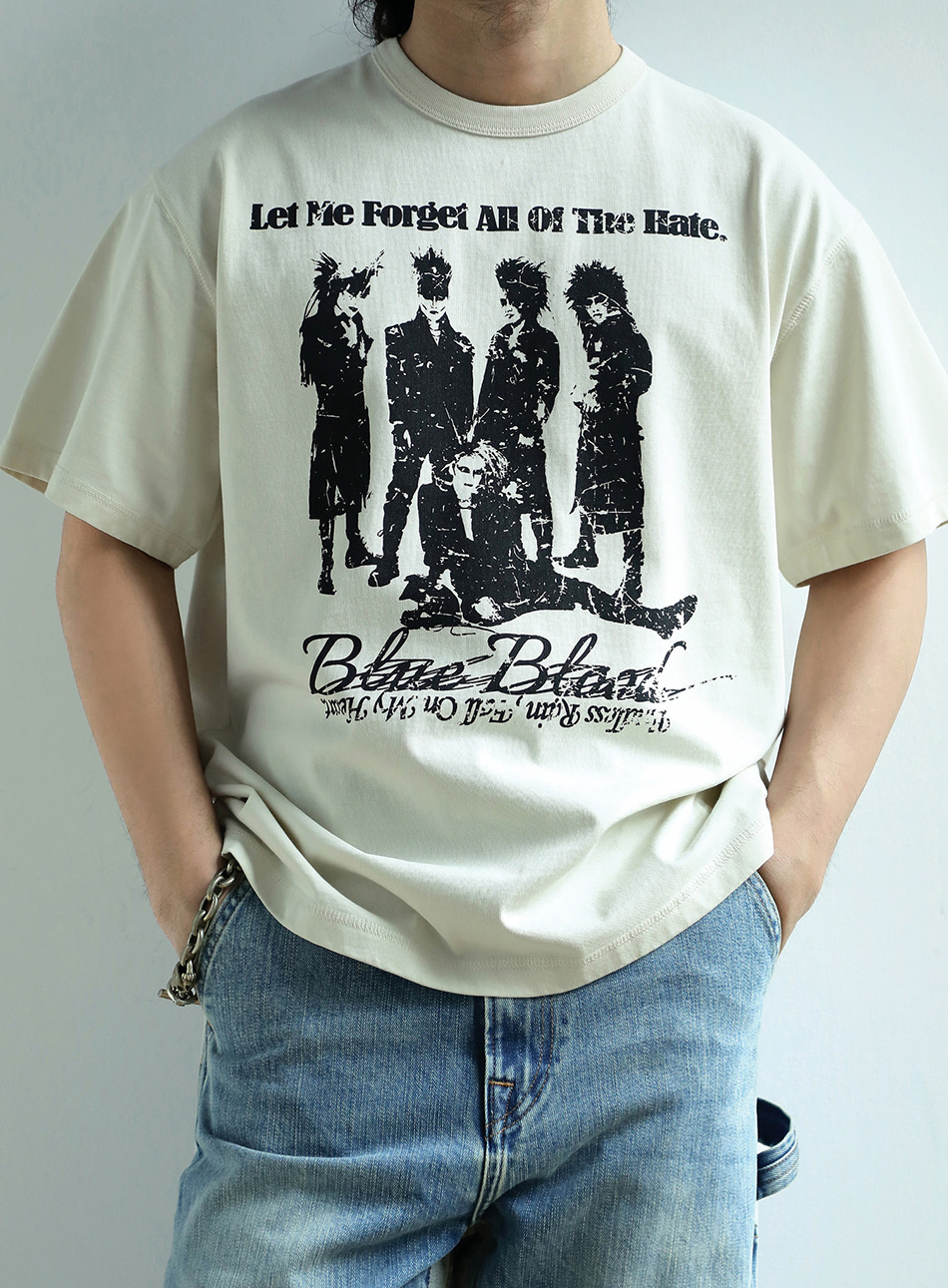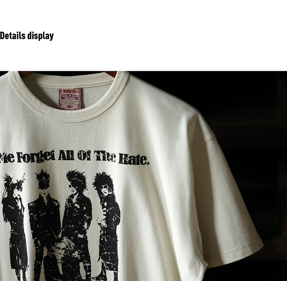 - 아시아 최초로 세계에 진출한 록 밴드 그룹 X JAPAN의 사진이 실크스크린 인쇄된 얼룩덜룩한 질감이 레트로한 클래식한 디자인의 티셔츠입니다.