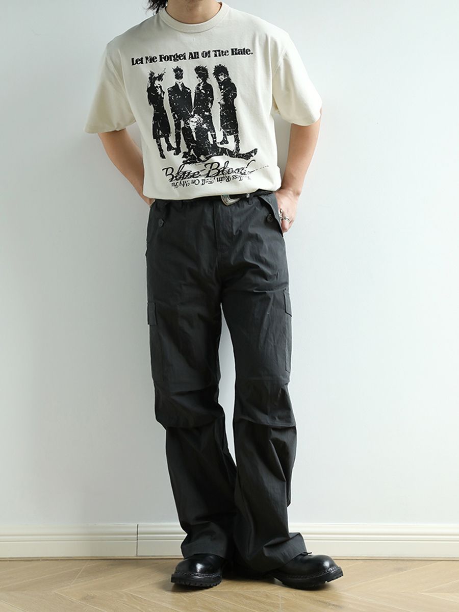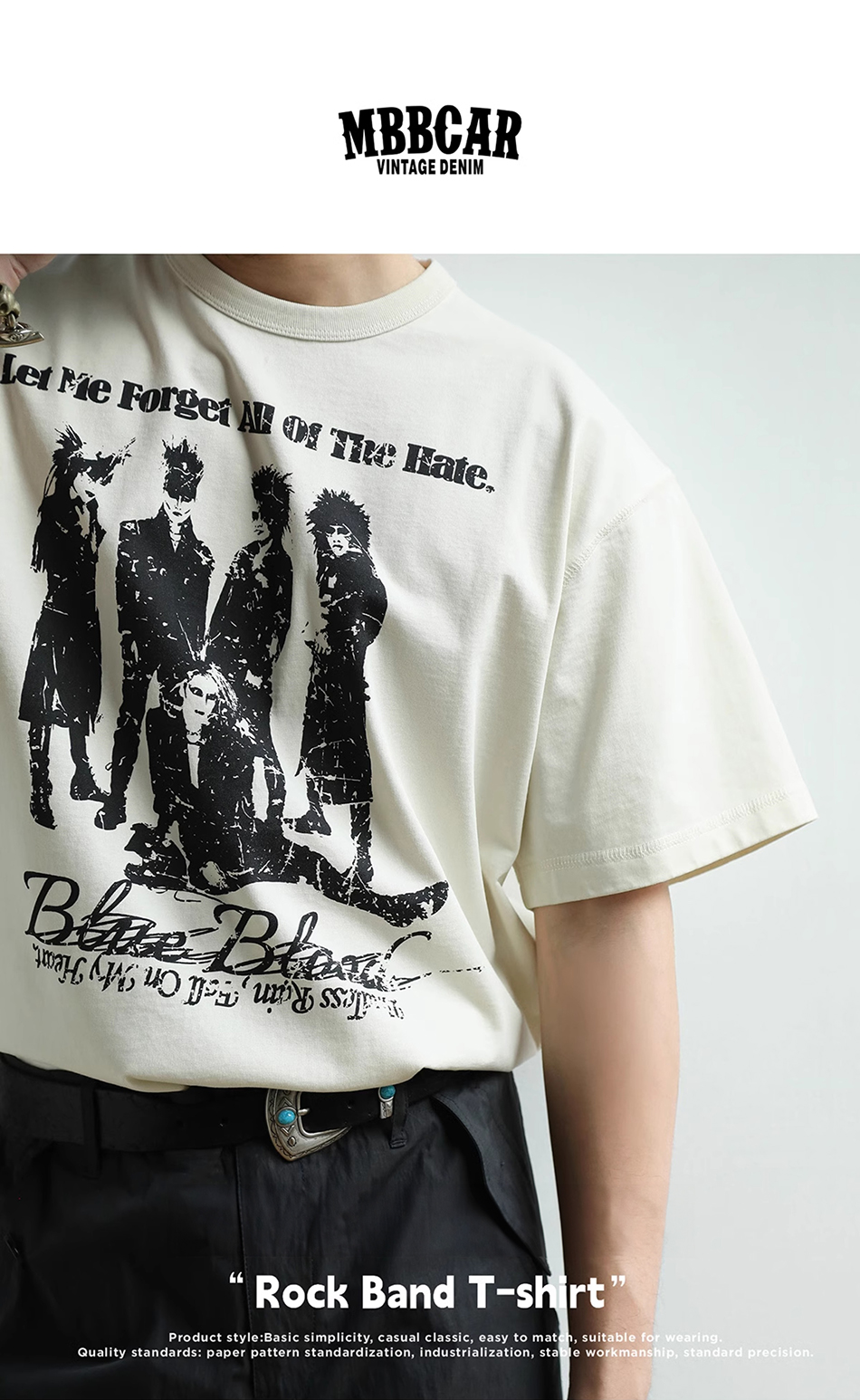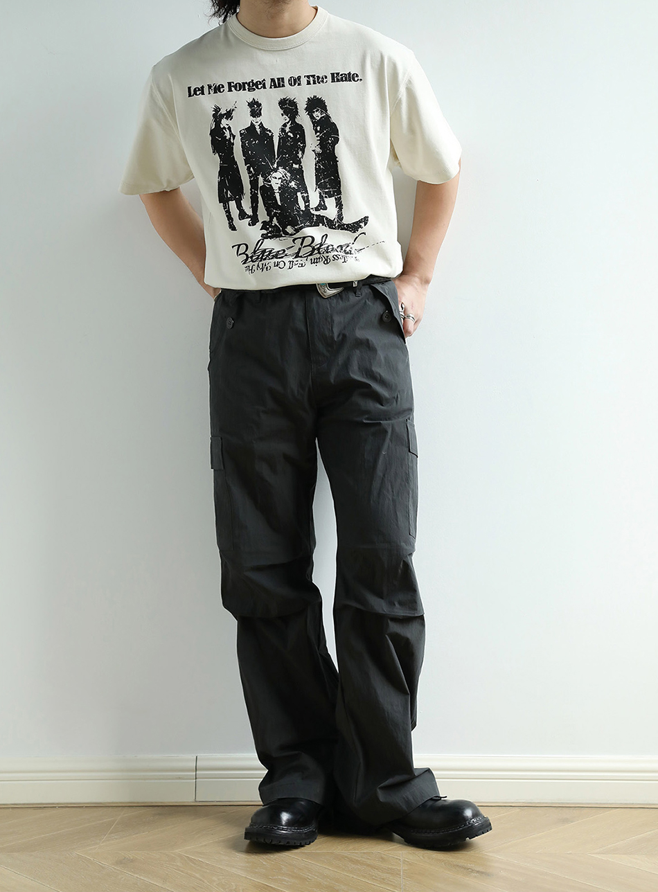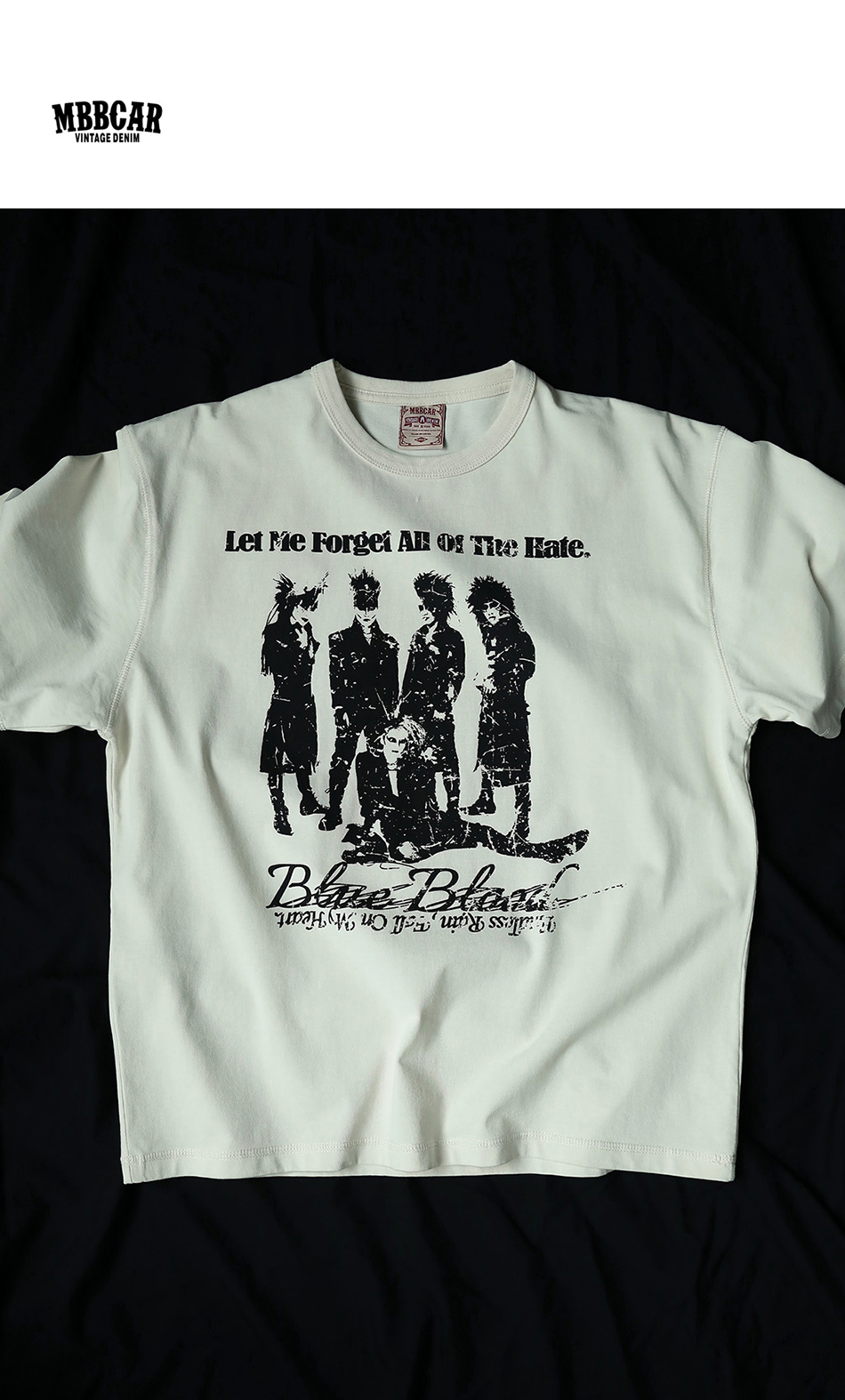 - 아시아 최초로 세계에 진출한 록 밴드 그룹 X JAPAN의 사진이 실크스크린 인쇄된 얼룩덜룩한 질감이 레트로한 클래식한 디자인의 티셔츠입니다.