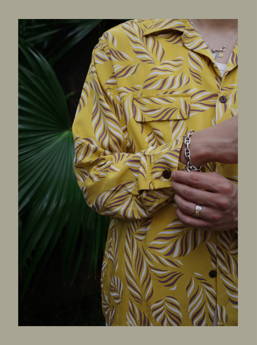• 색감과 낙엽 패턴이 유니크한 하와이안 셔츠입니다.
