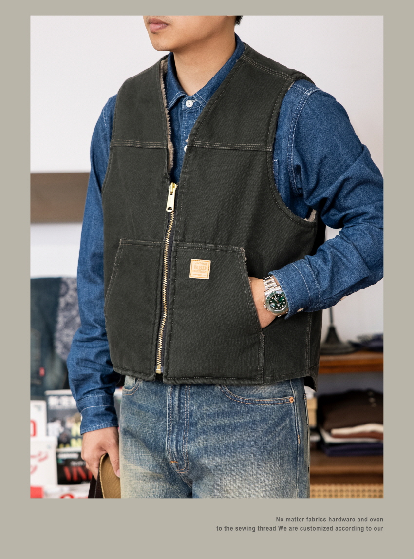 • 빈티지한 무드의 따뜻한 아메리칸 캔버스 램스울 베스트입니다.
