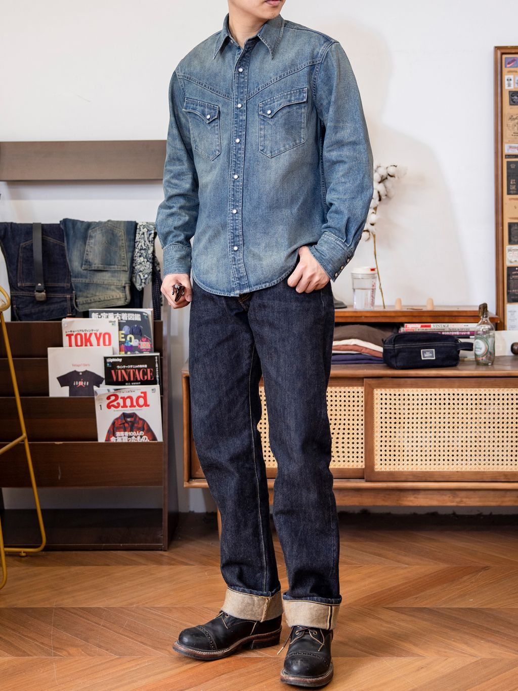 [레드토네이도] 11oz 워싱 판쵸 웨스턴 데님 셔츠