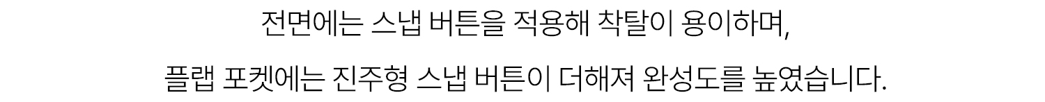 - 스냅 버튼 여밈과 플랩 포켓, 착용 편의성과 실용성 강화