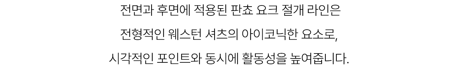 - 전면·후면 판쵸 요크 절개 라인, 웨스턴 감성 디자인