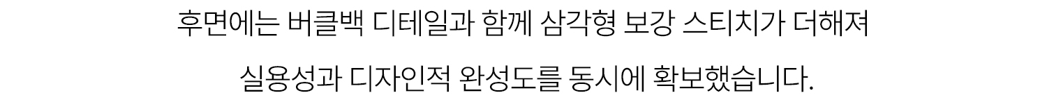 - 후면 버클백과 보강 스티치로 실용성과 디테일을 더했습니다.