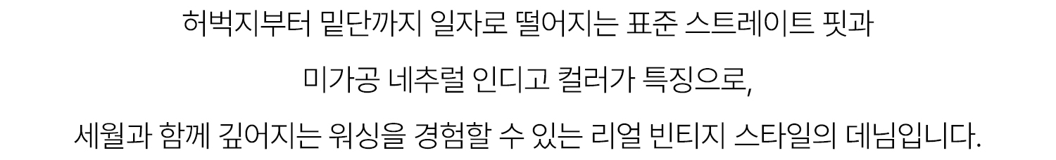 - 표준 스트레이트 핏 / 네추럴 인디고 염색 / 기본 워싱 처리