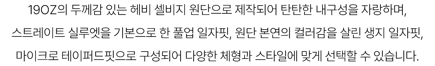 - 풀업 일자핏 / 생지 일자핏 / 마이크로 테이퍼드핏 선택 가능