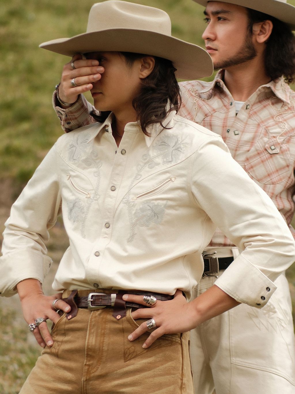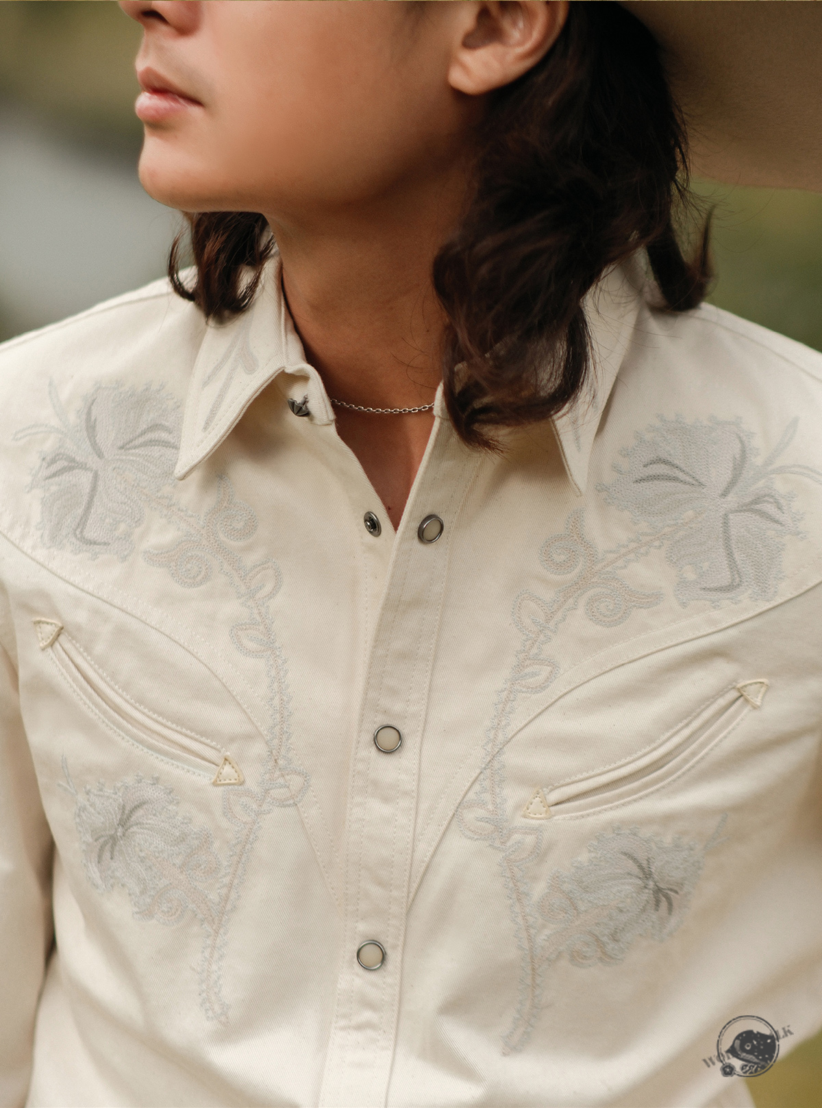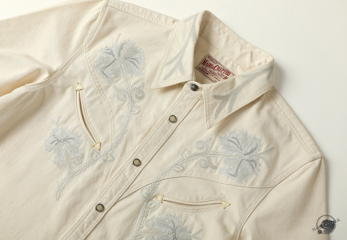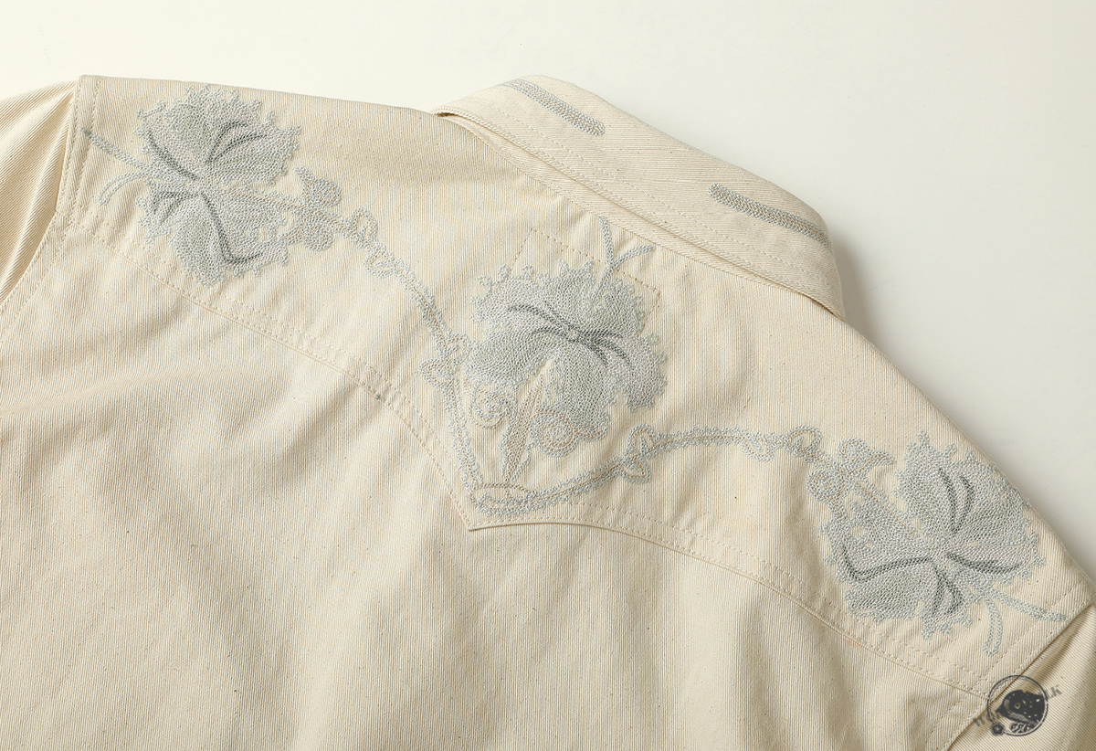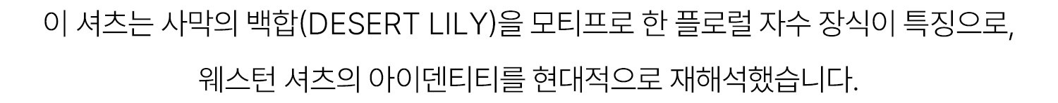 • 사막의 백합에서 영감을 받은 플로럴 자수가 돋보이는 웨스턴 셔츠로 은은한 베이지 컬러와 정교한 스티치가 조화를 이루어 고급스러운 빈티지 무드를 전달합니다. 프론트 포켓과 진주 스냅 버튼으로 웨스턴 특유의 감각을 완성했으며, 내추럴하면서도 개성 있는 스타일링이 가능한 시즌리스 아이템입니다.