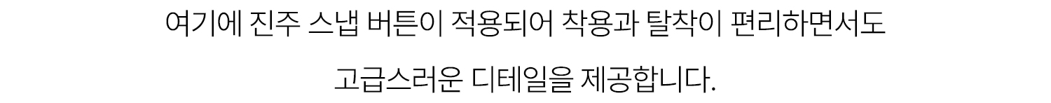- 진주 스냅 버튼 적용으로 간편한 착용과 고급스러운 마무리