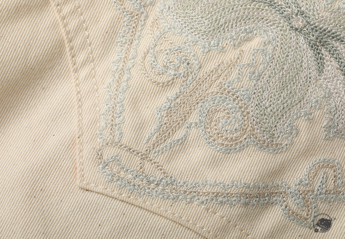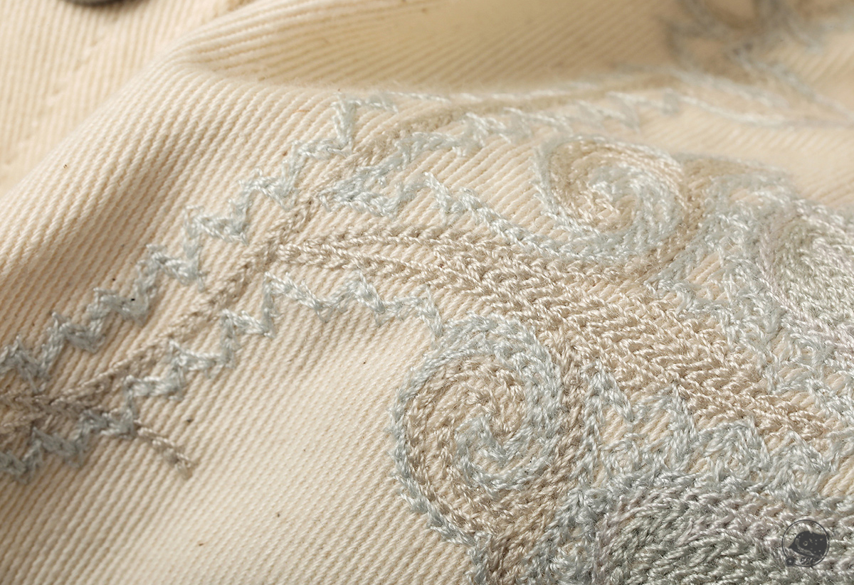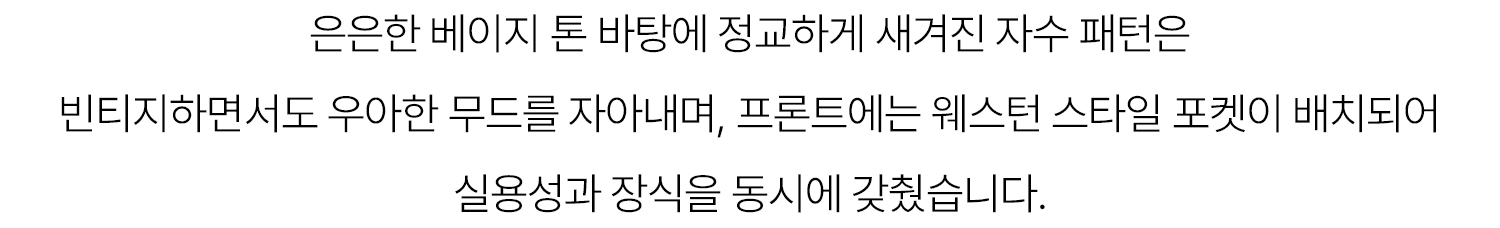 - 은은한 베이지 톤 바탕에 정교한 스티치로 완성된 빈티지 무드