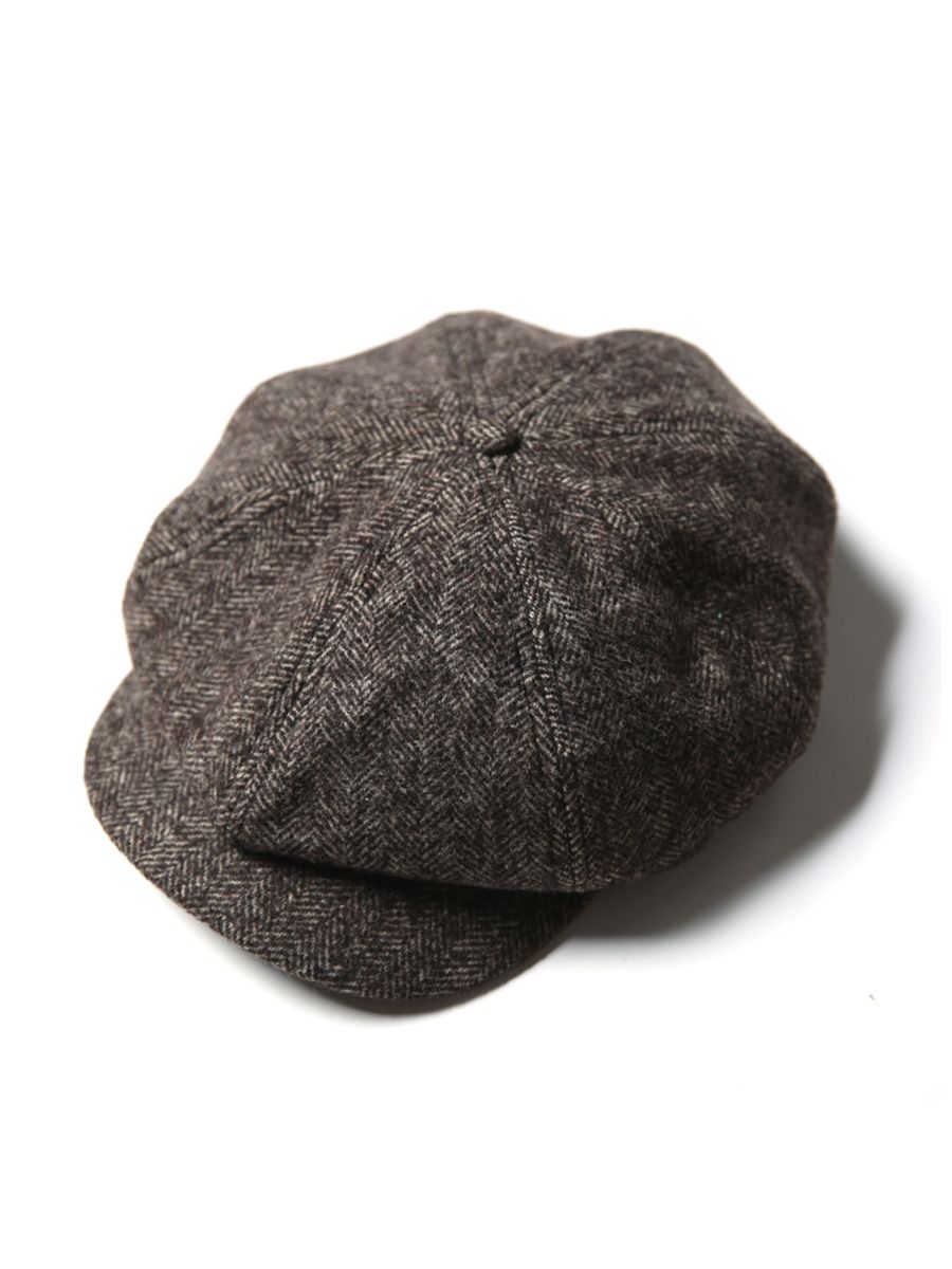 • 레트로풍의 헤링본 모직 팔각 모자입니다.